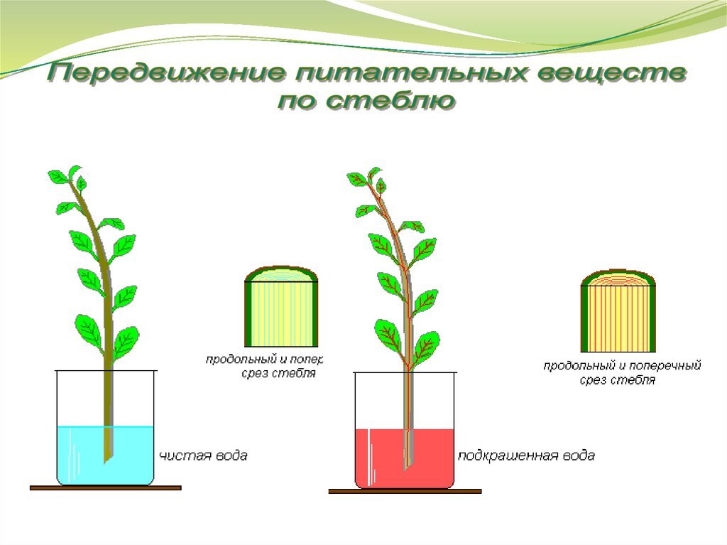 вода от корня к листьям,