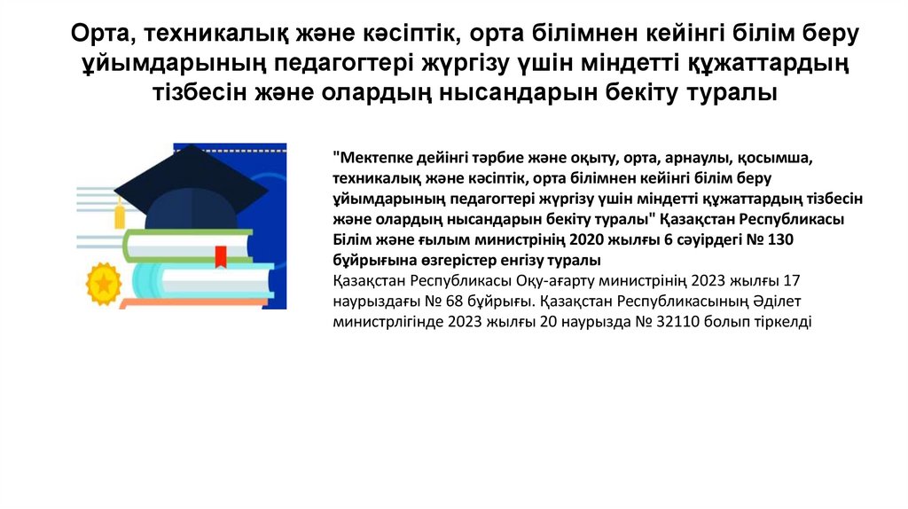 Орта, техникалық және кәсіптік, орта білімнен кейінгі білім беруұйымдарының педагогтері жүргізу үшін міндетті құжаттардың