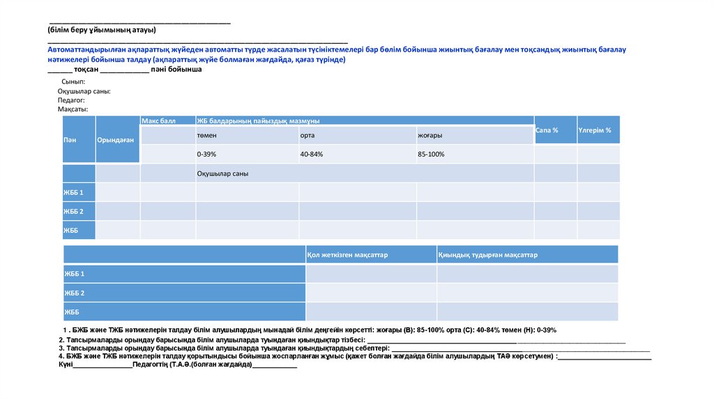 автоматтандырылған ақпараттық жүйеден автоматты түрде жасалатын және бөлім бойынша жиынтық бағалау мен