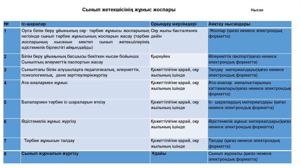 сынып жетекшісінің жұмыс жоспарын (қағаз немесе электрондық word немесе pdf