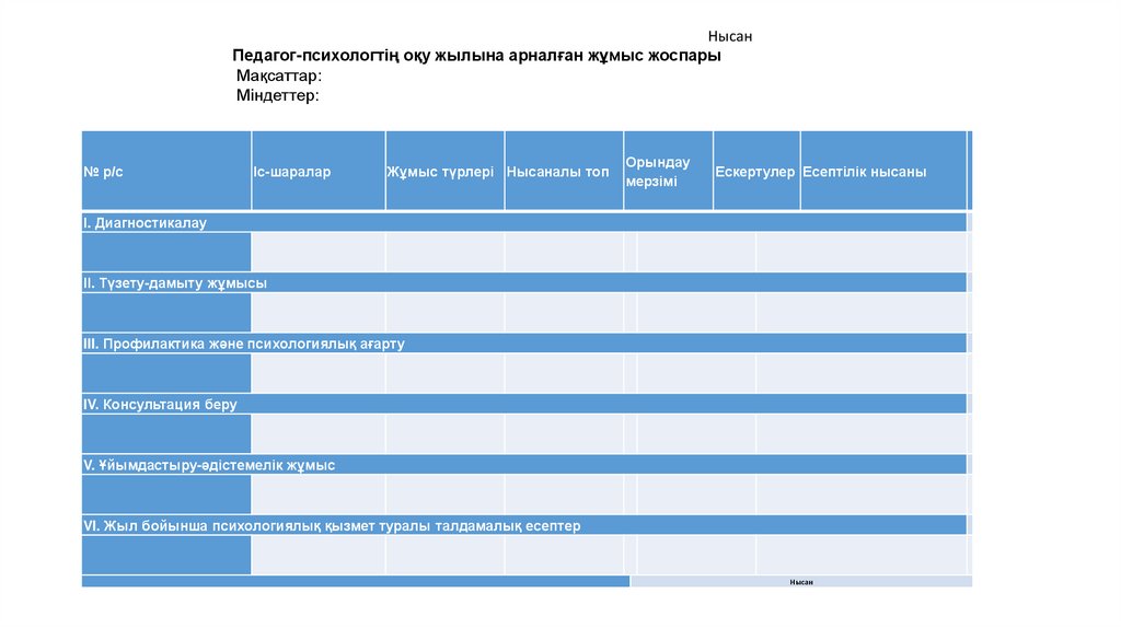 педагог-психологтің оқу жылына арналған жұмыс жоспарын (қағаз немесе