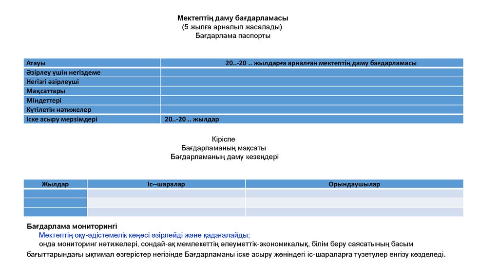 Мектептің даму бағдарламасы(5 жылға арналып жасалады)