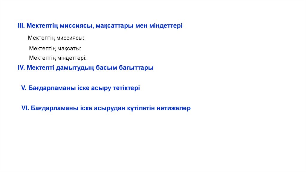 III. Мектептің миссиясы, мақсаттары мен міндеттеріМектептің миссиясы: