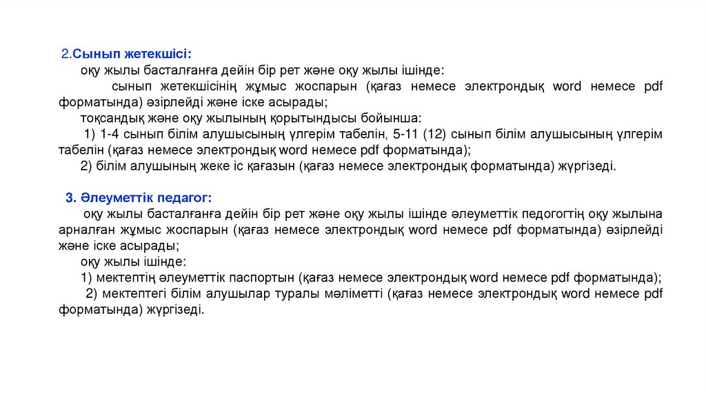 2.Сынып жетекшісі:оқу жылы басталғанға дейін бір рет және оқу жылы ішінде: