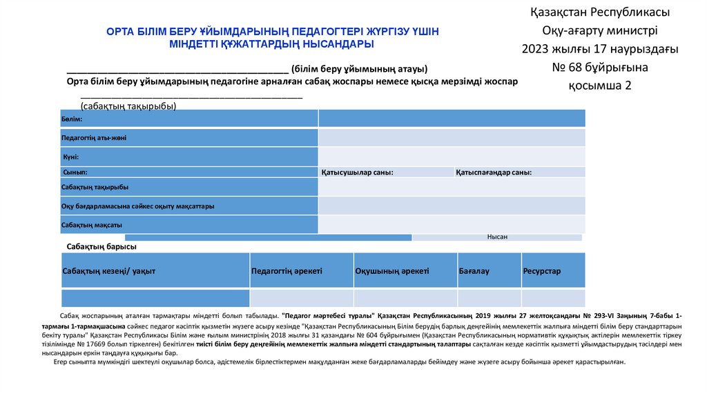 ОРТА БІЛІМ БЕРУ ҰЙЫМДАРЫНЫҢ ПЕДАГОГТЕРІ ЖҮРГІЗУ ҮШІН МІНДЕТТІ ҚҰЖАТТАРДЫҢ ТІЗБЕСІ