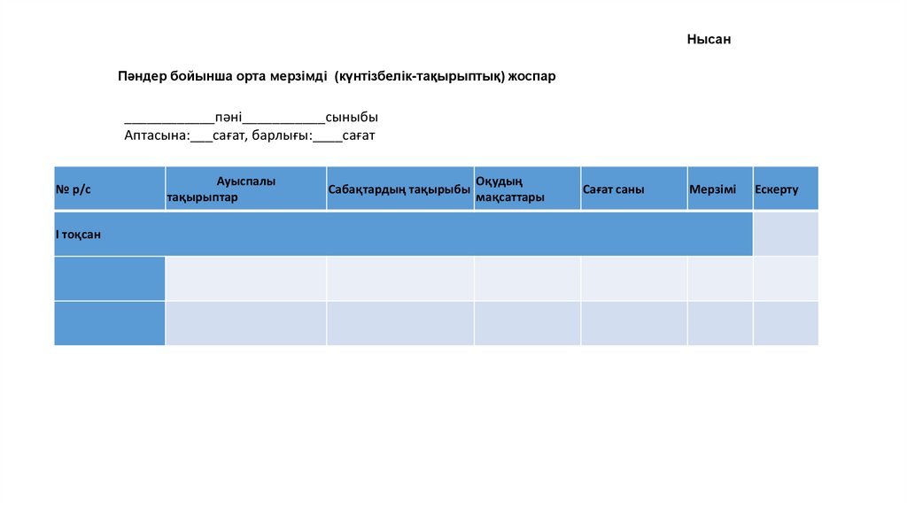 1) пәндер бойынша орта мерзімді (күнтізбелік-тақырыптық) жоспарды (қағаз немесе электрондық word немесе pdf
