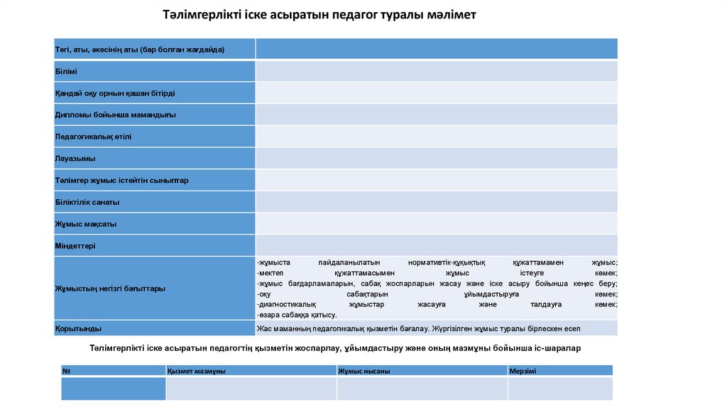 жүзеге асыратын педагогтерге қойылатын талаптарына (Қазақстан Республикасының нормативтік