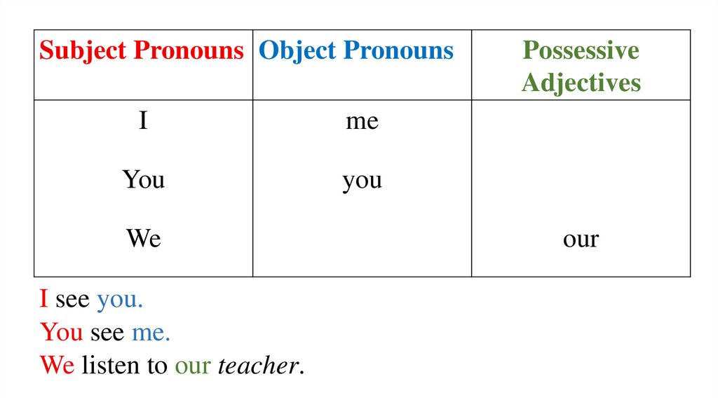 Subject Pronouns Object Pronouns