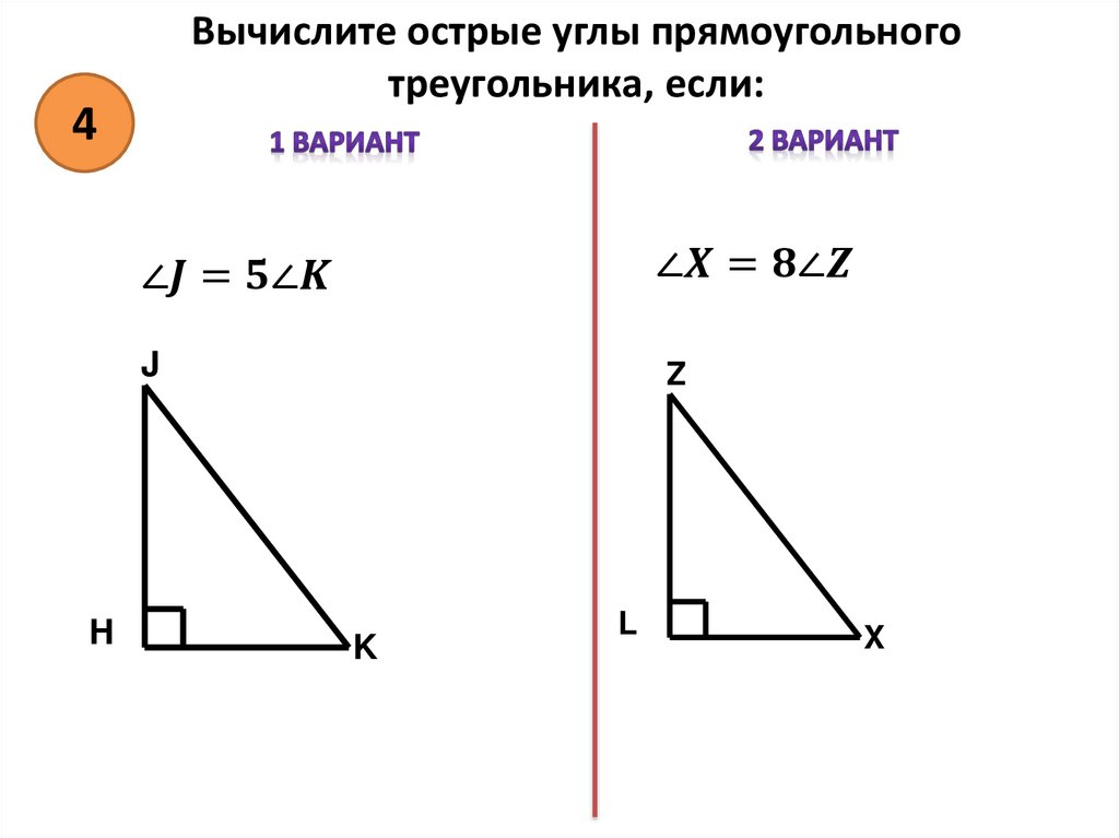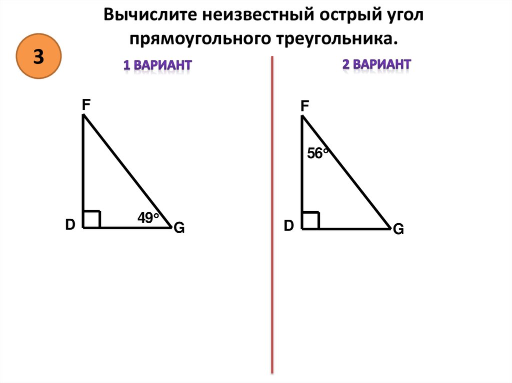 Вычислите неизвестный острый уголпрямоугольного треугольника.
