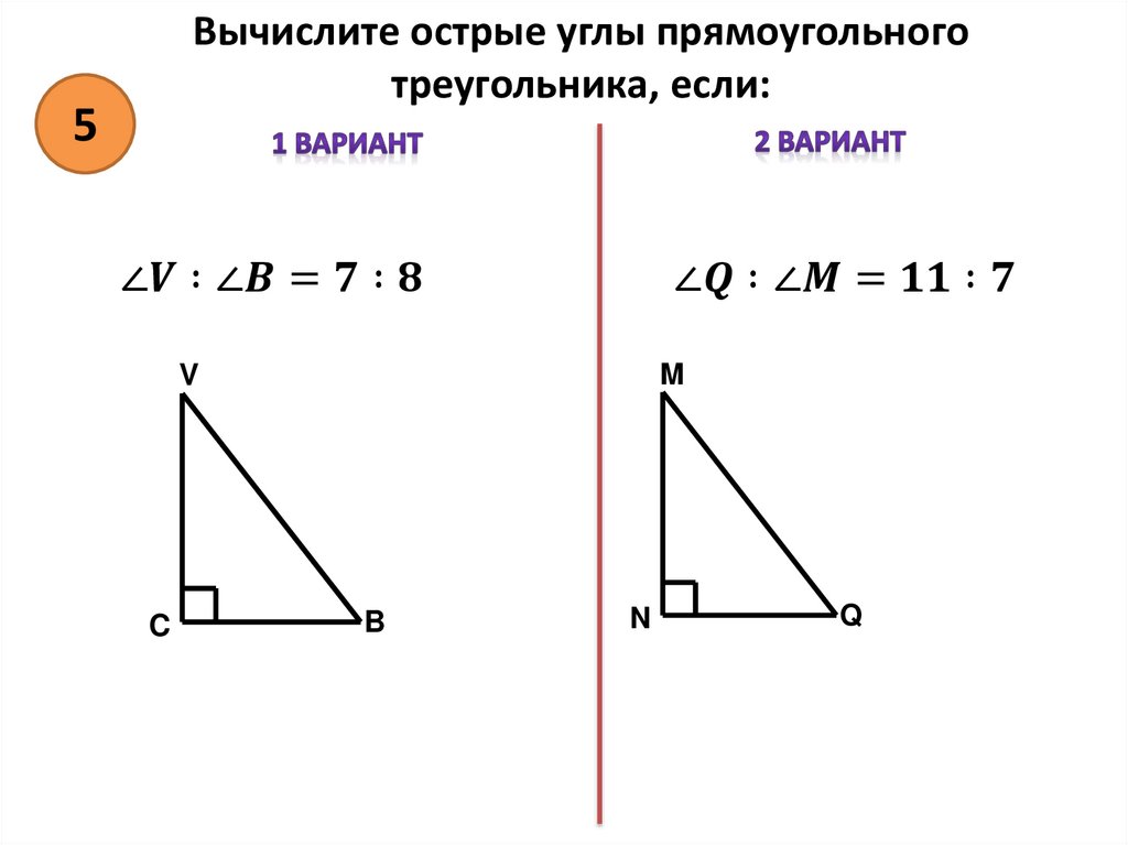 Математический диктант по геометрии 7 класс на тему _Прямоугольные треугольники_
