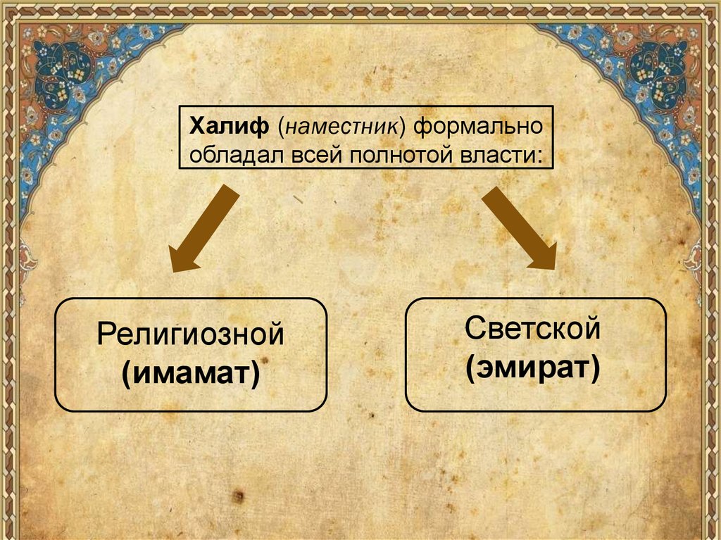Халиф (наместник) формальнообладал всей полнотой власти: