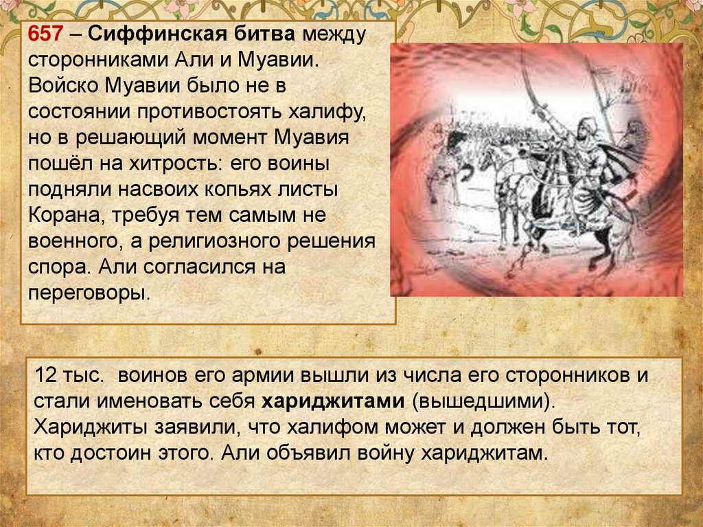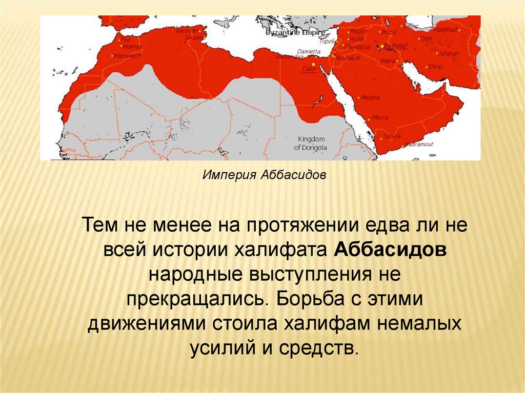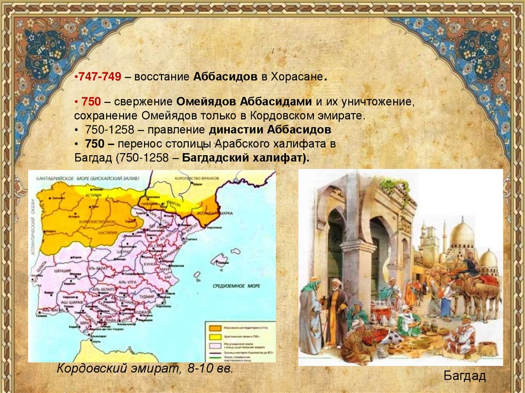 •747-749 – восстание Аббасидов в Хорасане.• 750 – свержение Омейядов Аббасидами и их уничтожение,