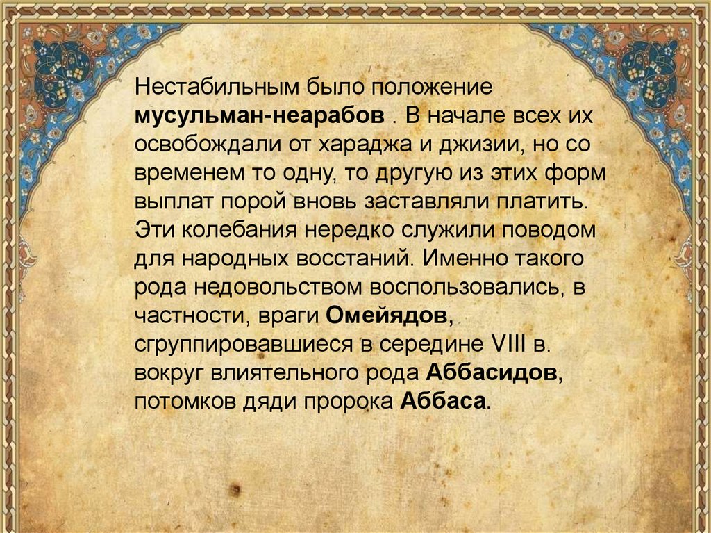 Нестабильным было положениемусульман-неарабов . В начале всех их