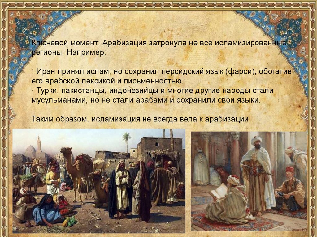 Ключевой момент: Арабизация затронула не все исламизированныерегионы. Например: