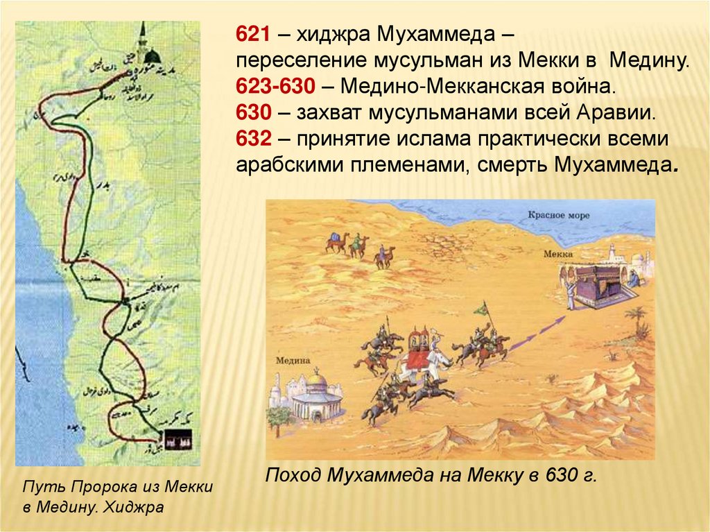 621 – хиджра Мухаммеда –переселение мусульман из Мекки в Медину.