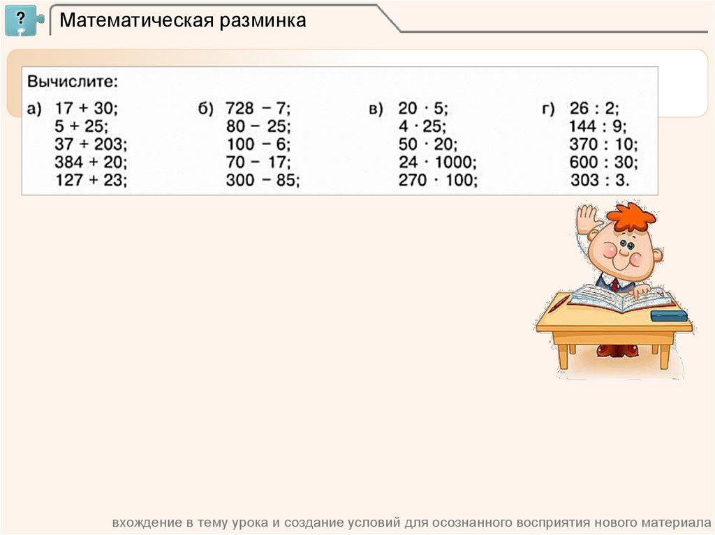 вхождение в тему урока и создание условий для осознанного восприятия нового материала