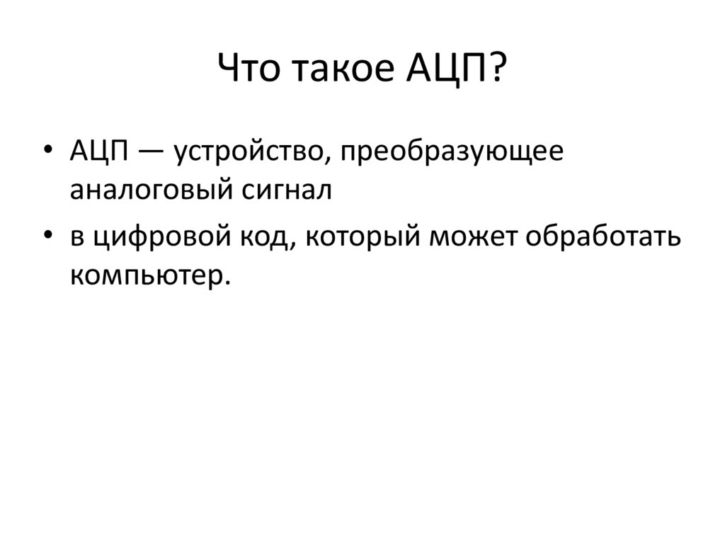Что такое АЦП?• АЦП — устройство, преобразующее