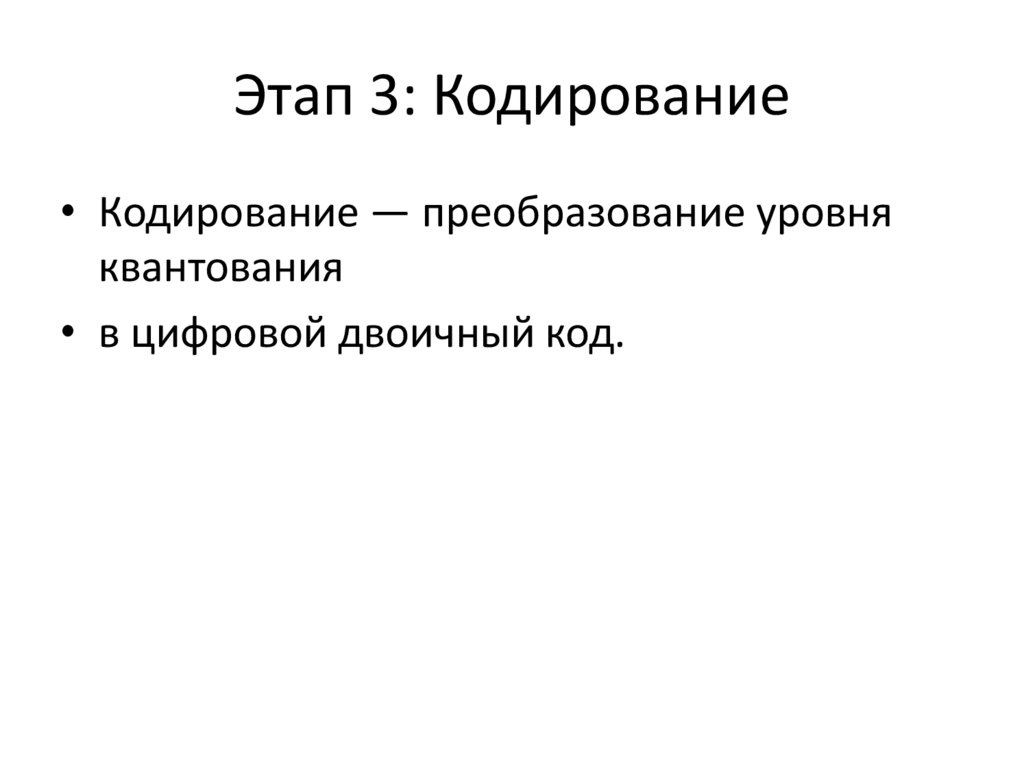 Этап 3: Кодирование• Кодирование — преобразование уровня