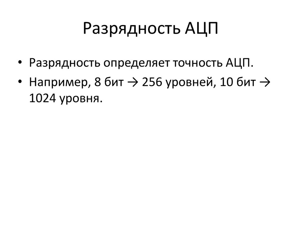 Разрядность АЦП• Разрядность определяет точность АЦП.