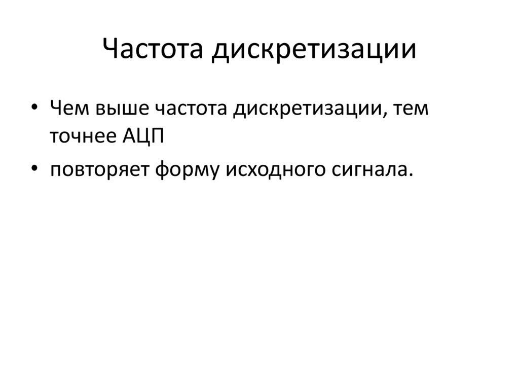 Частота дискретизации• Чем выше частота дискретизации, тем