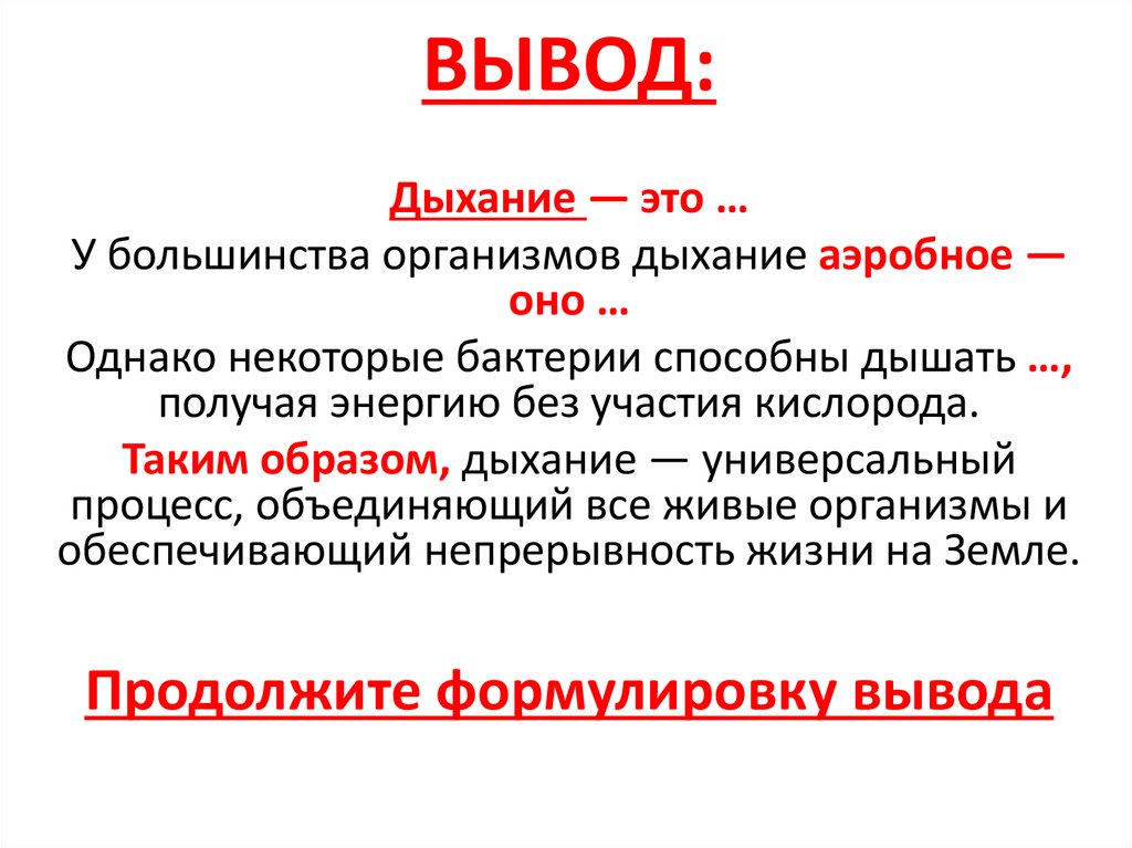 ВЫВОД:Дыхание — это …