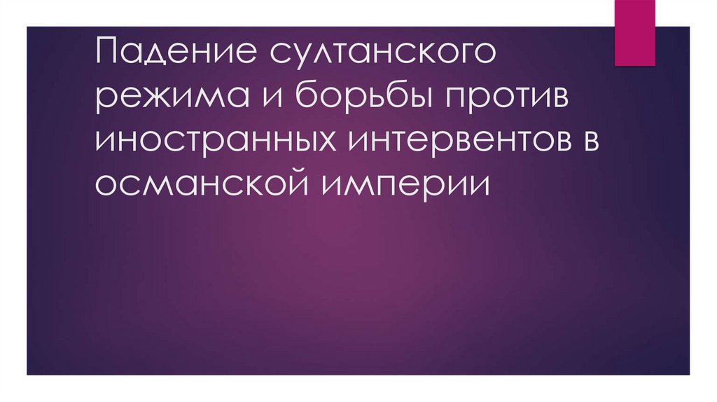 1. Падение султанского режима и борьбы против иностранных интервентов в османской империи