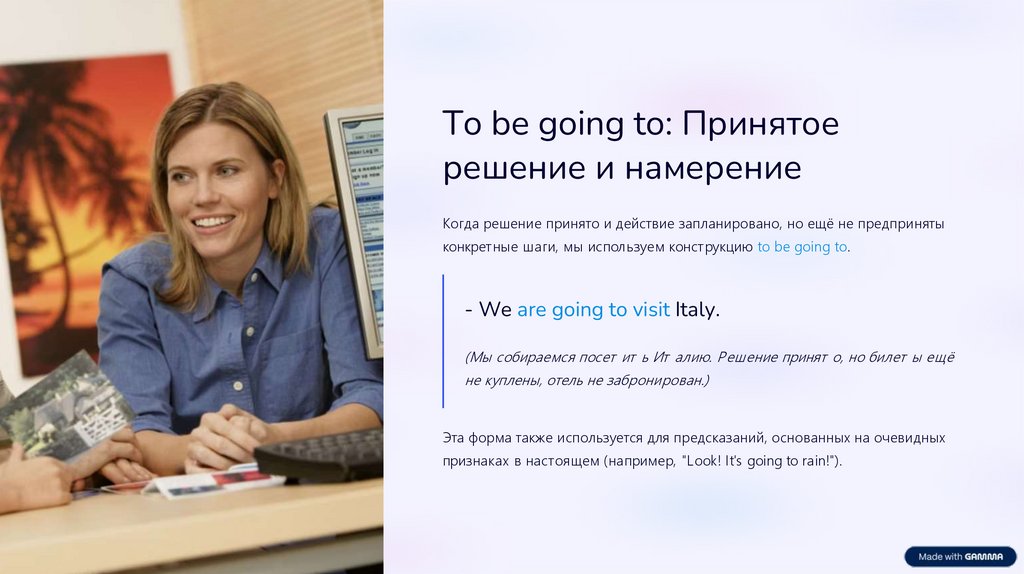 (Мы собираемся посет ит ь Ит алию. Решение принят о, но билет ы ещё