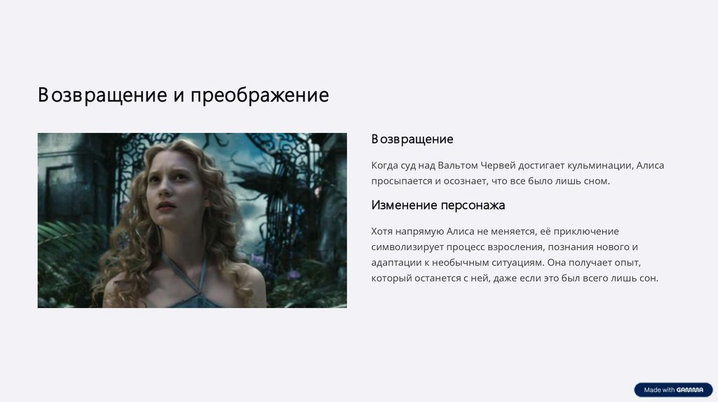 Хотя напрямую Алиса не меняется, её приключение