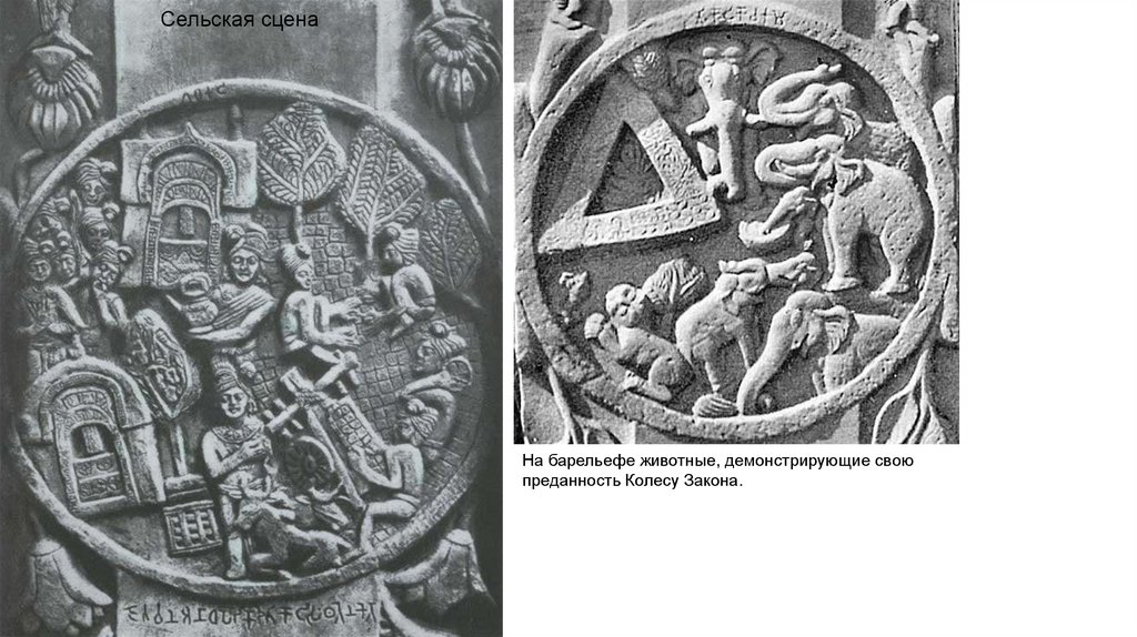 Сельская сценаНа барельефе животные, демонстрирующие свою