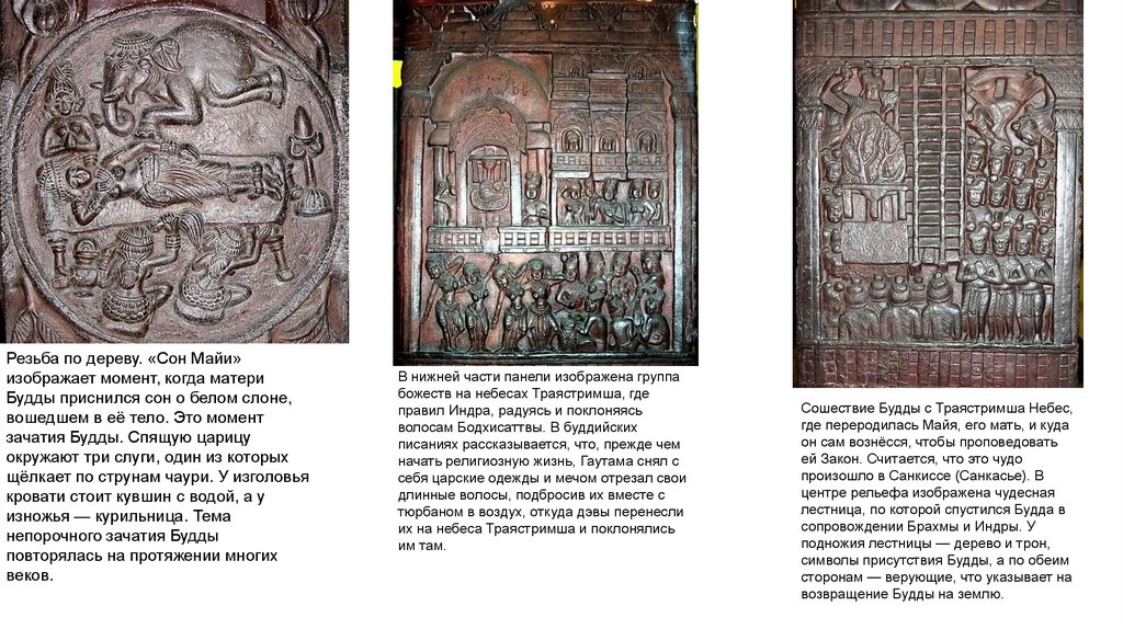 Резьба по дереву. «Сон Майи»изображает момент, когда матери