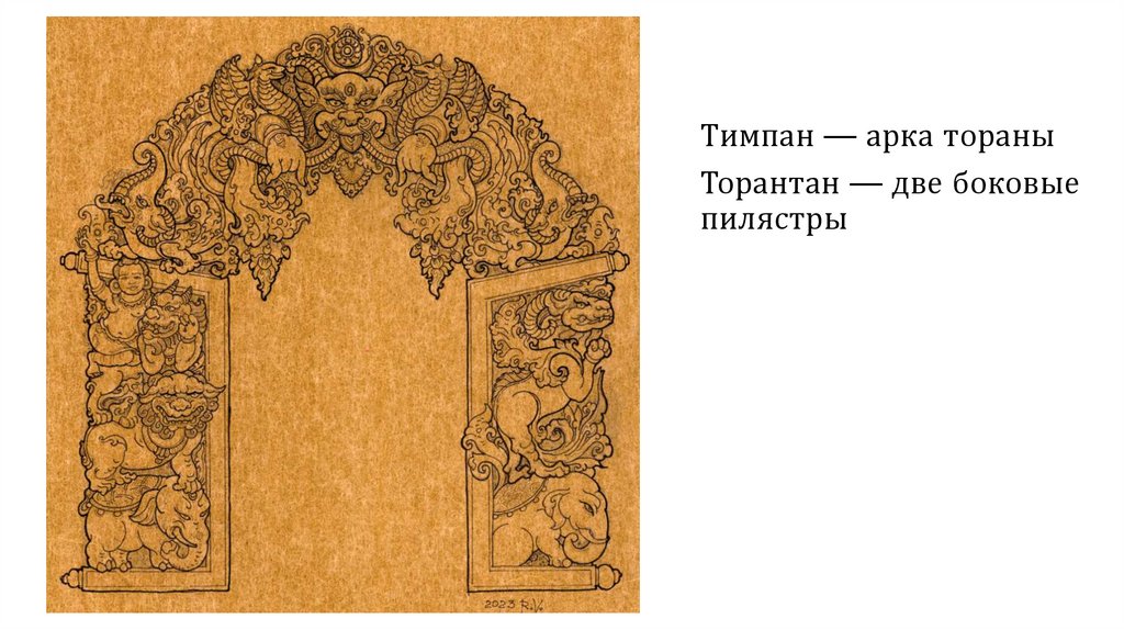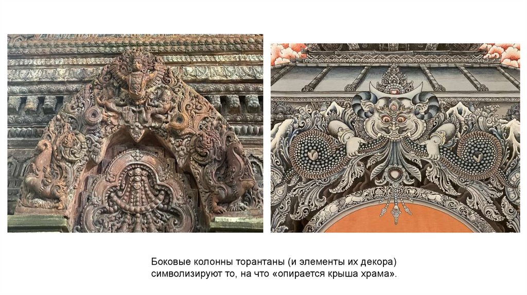 Боковые колонны торантаны (и элементы их декора)символизируют то, на что «опирается крыша храма».