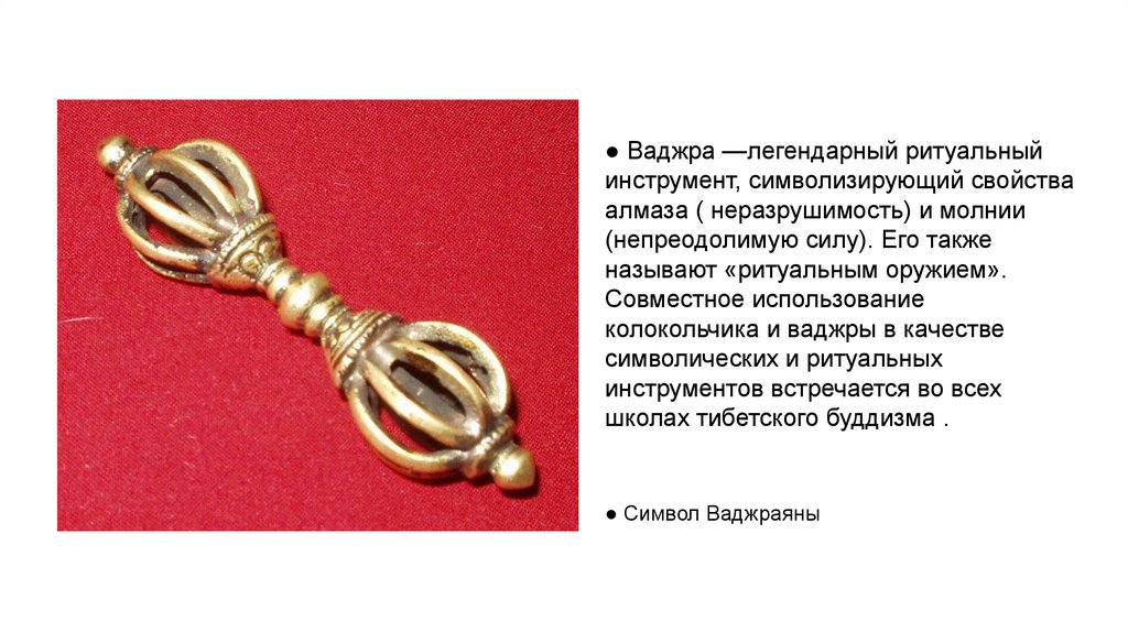● Ваджра —легендарный ритуальныйинструмент, символизирующий свойства