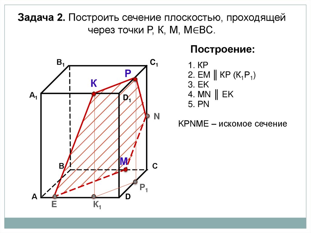 Задача 5. Построить сечение плоскостью, проходящейчерез данные точки К, М, Р, Р∈АВС