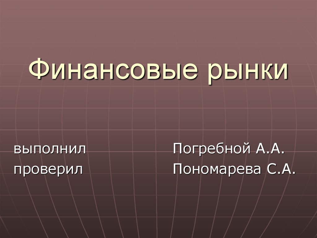 1. Финансовые рынки