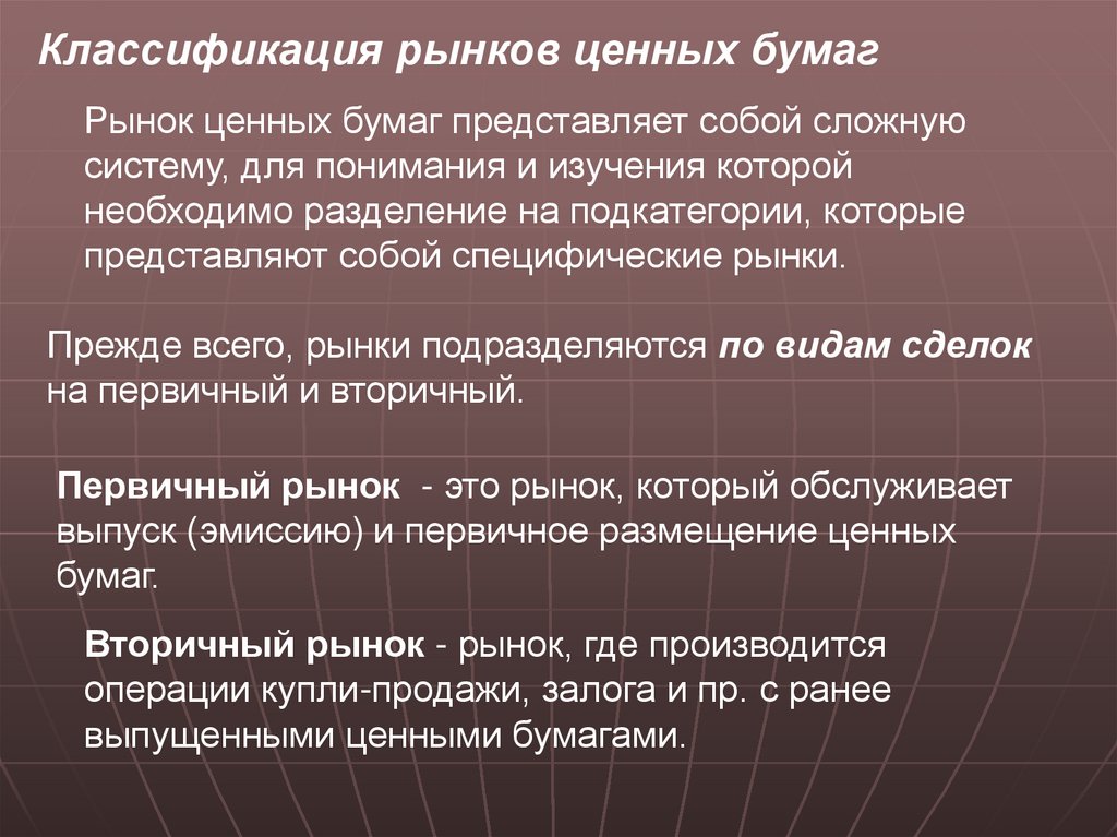 Сегменты финансового рынка и их