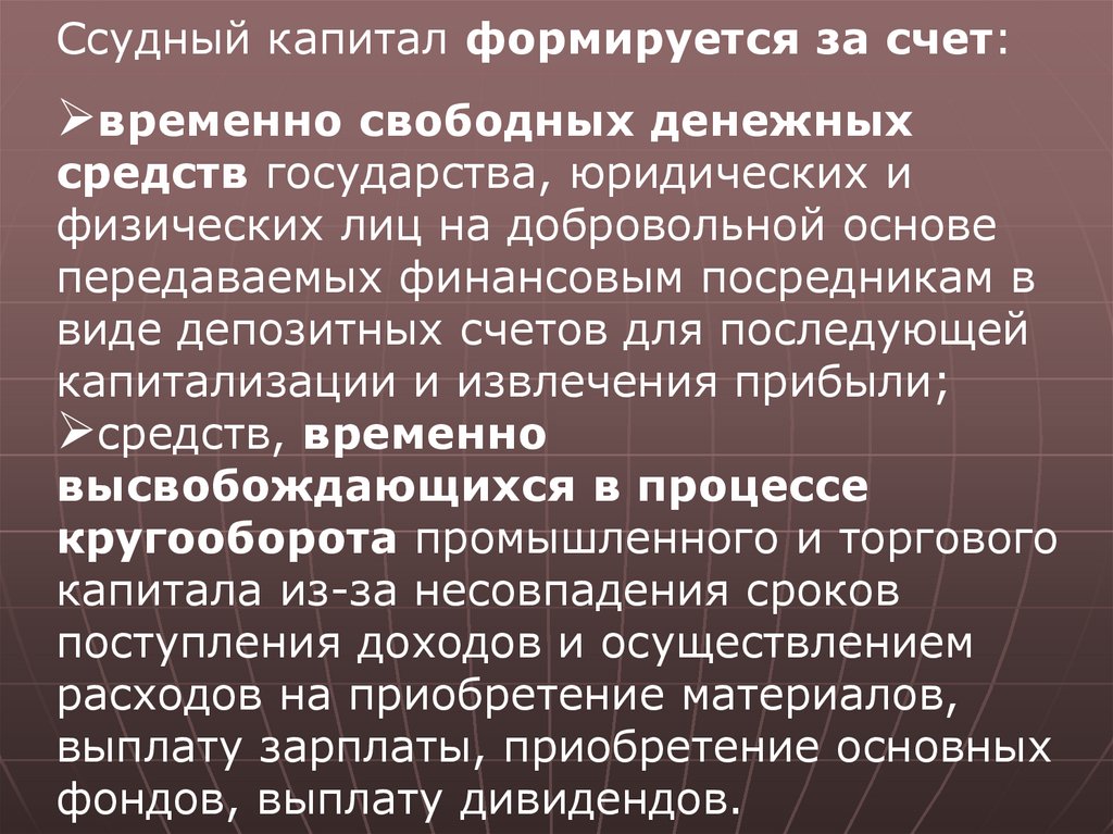 ссудных капиталов на экономику данного государства.