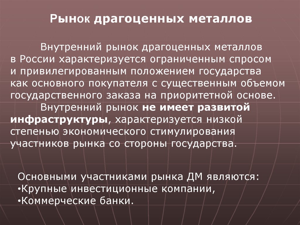Рынок драгоценных металловВнутренний рынок драгоценных металлов