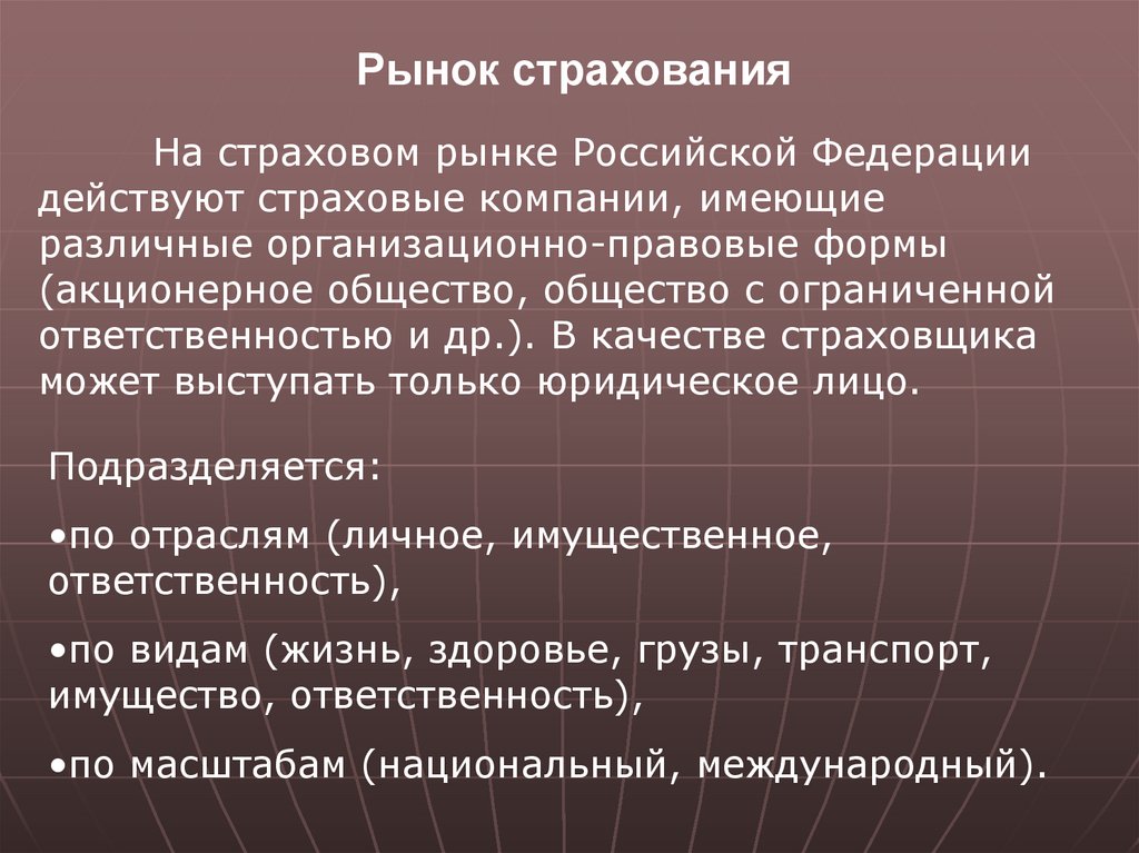Рынок страхования