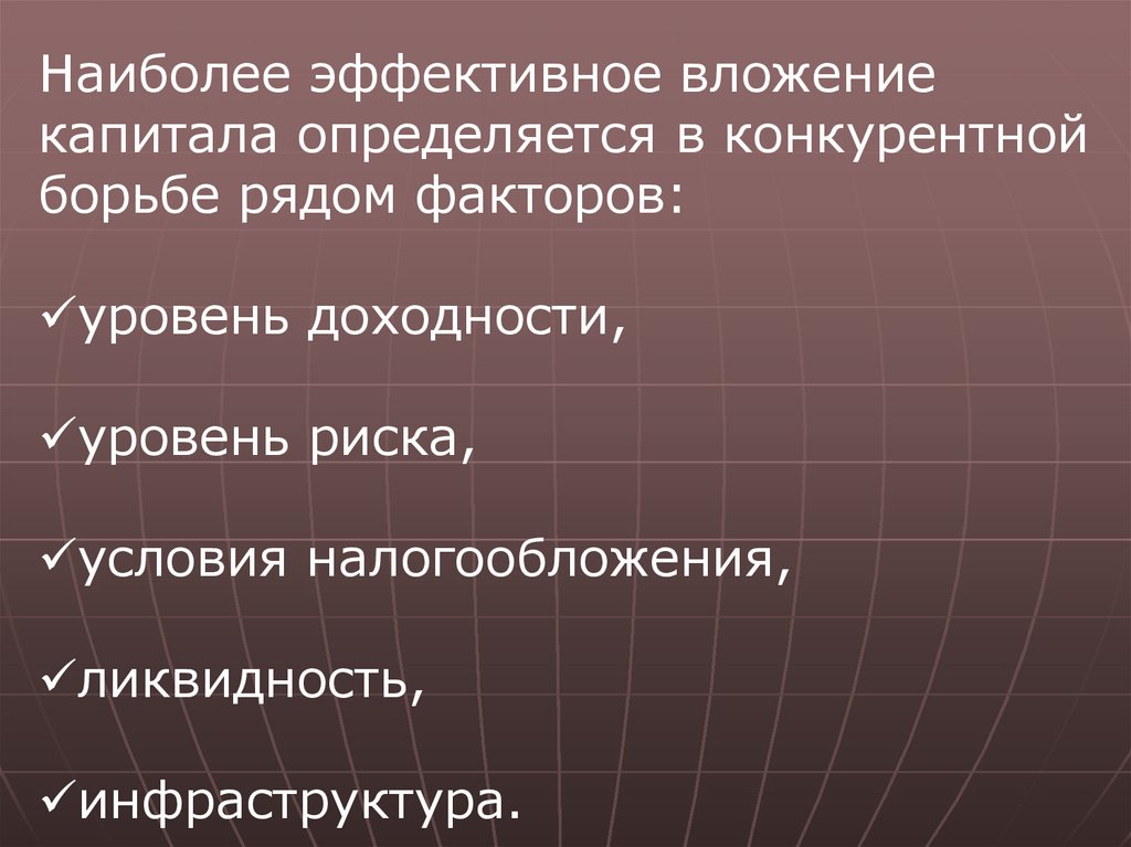 Наиболее эффективное вложениекапитала определяется в конкурентной