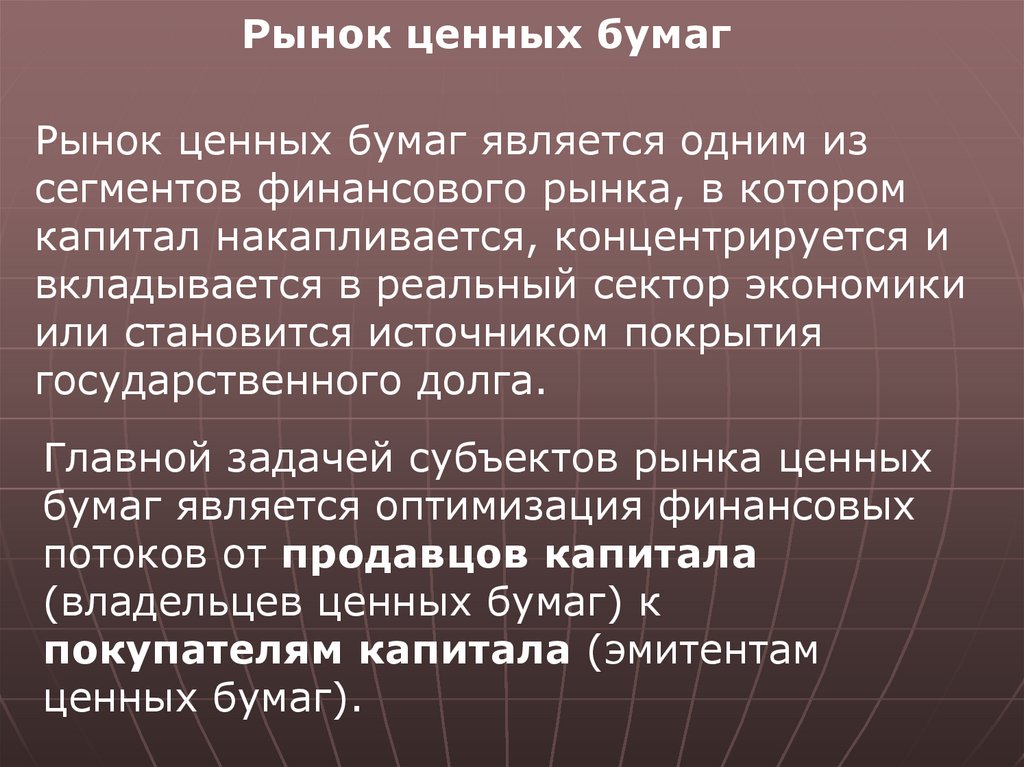 Главной задачей субъектов рынка ценных