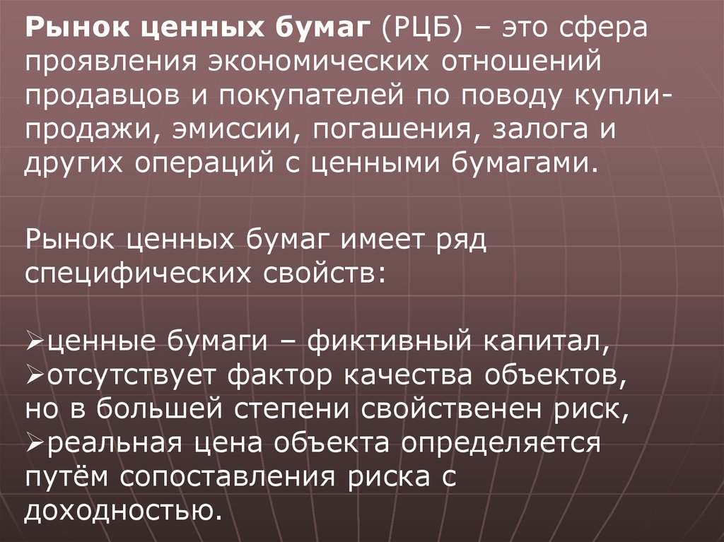 Фондовый рынок — совокупность кредитных