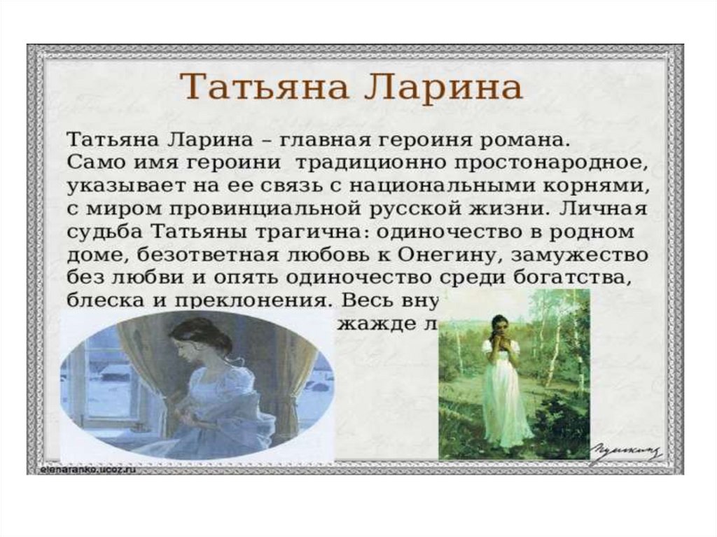 3. «Татьяна Ларина- нравственный идеал А. С.Пушкина. Татьяна и Ольга.»
