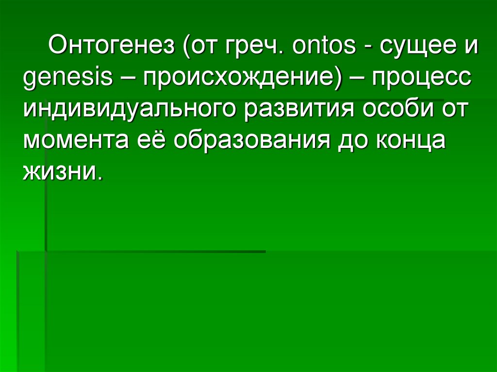 Онтогенез (от греч. ontos - сущее иgenesis – происхождение) – процесс