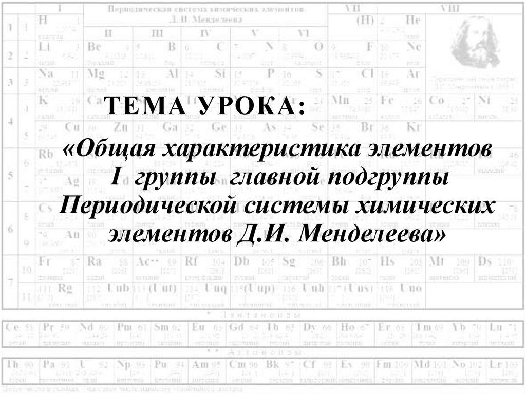 «Общая характеристика элементовI группы главной подгруппы