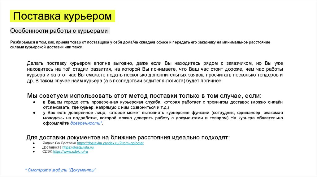 Поставка курьеромОсобенности работы с курьерами