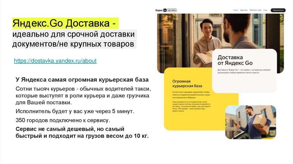 Яндекс.Go Доставкаидеально для срочной доставки
