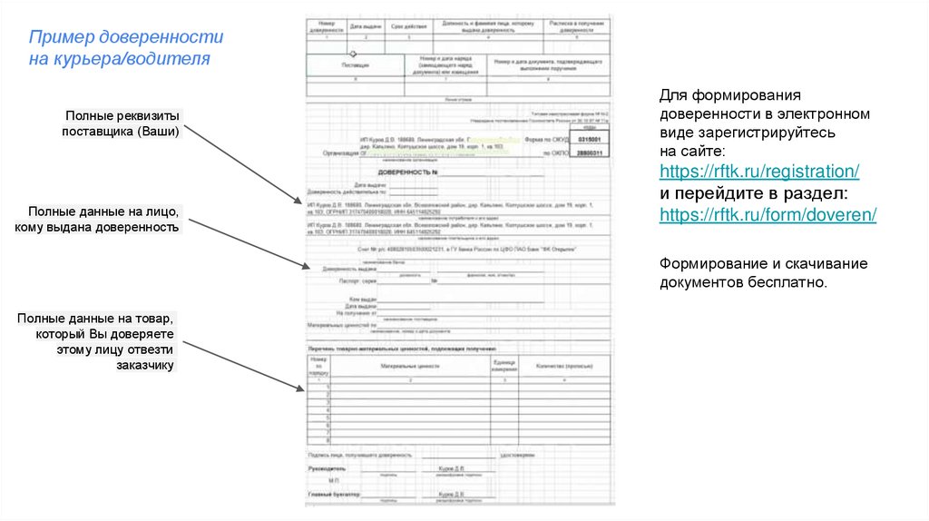 Готовим доверенность на водителя/грузчика ТК, чтобы он мог представлять интересы Вашей