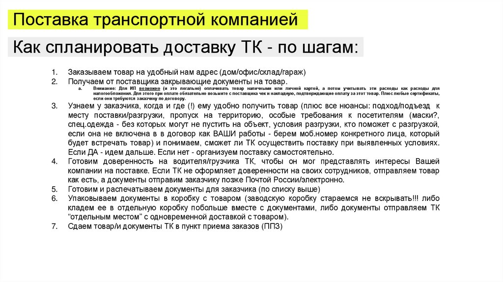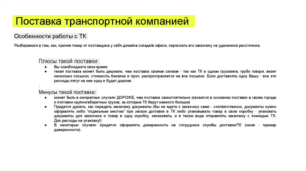 компании на поставке. Если ТК не оформляет доверенности на своих сотрудников, отправляем товар