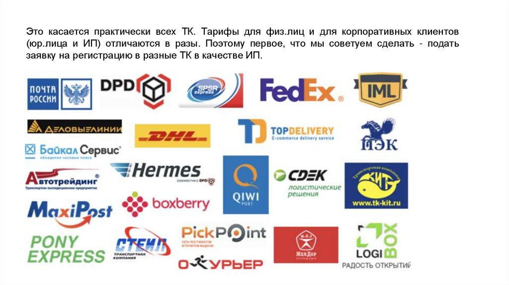 Это касается практически всех ТК. Тарифы для физ.лиц и для корпоративных клиентов(юр.лица и ИП) отличаются в разы. Поэтому первое, что мы советуем сделать - подать