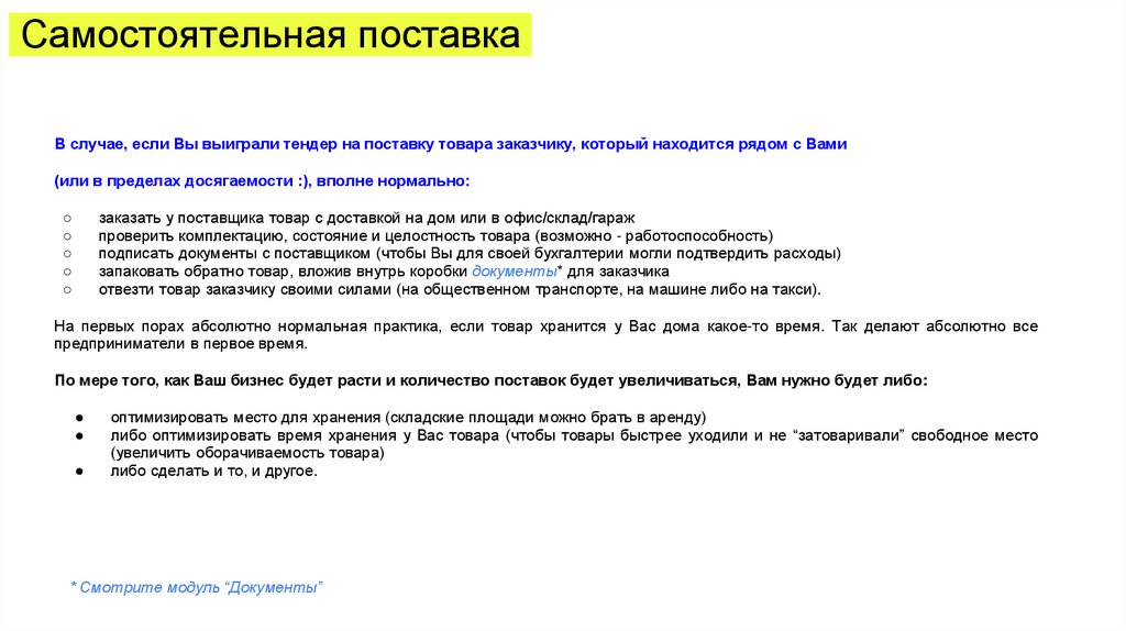 Самостоятельная поставкаВ случае, если Вы выиграли тендер на поставку товара заказчику, который находится рядом с Вами